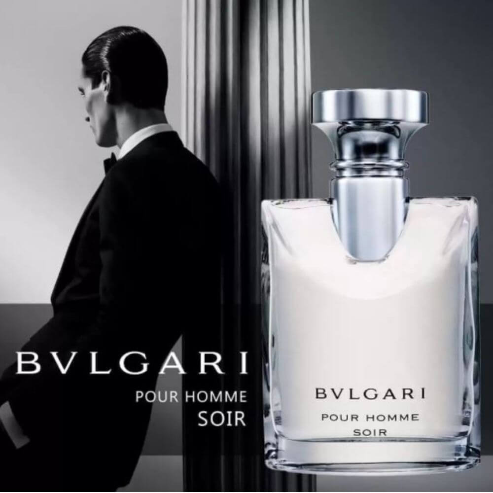 Bvlgari Pour Homme Soir For Men's top notes of guaiac wood, Darjeeling tea, and musk amalgamate into a simple yet intoxicating result, perfect for any gentleman looking for a timeless signature scent to carry him through the day with confidence.