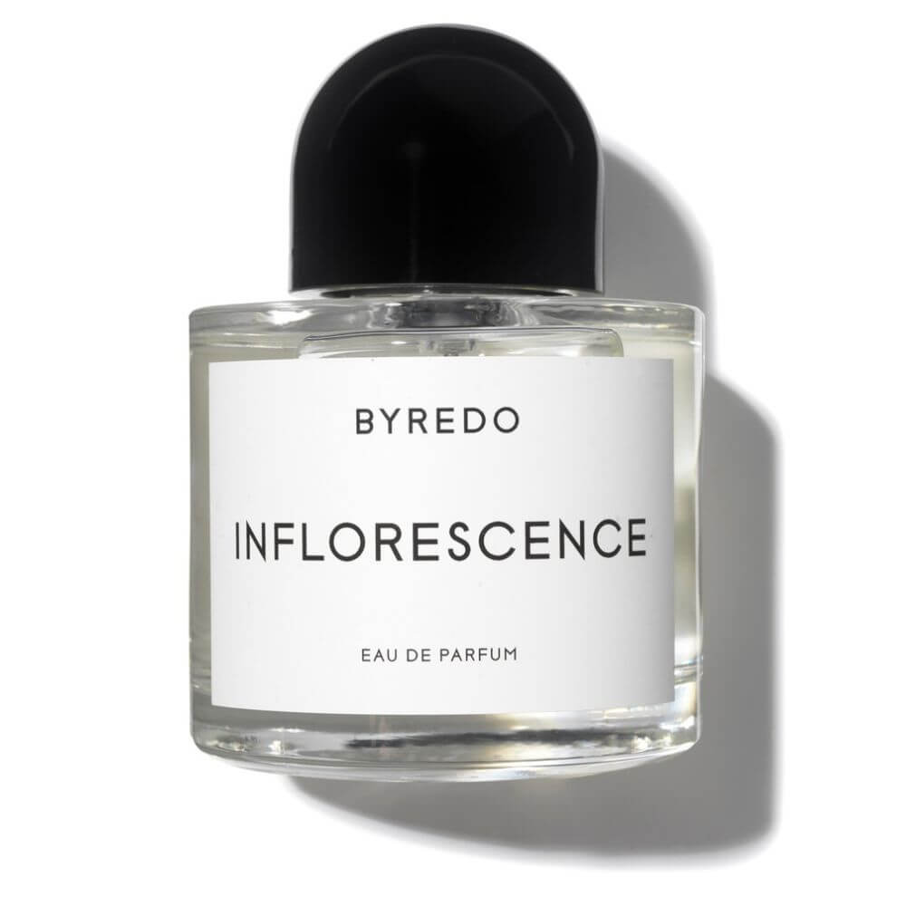 Byredo Inflorescence Eau de Parfum evokes a cool spring wave of citrusy-green lily of the valley and creamy magnolia, intertwining their scents to the very base dominated by luxurious jasmine with its sweet freshness.