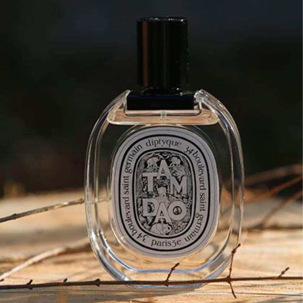 Diptyque Tam Dao Eau De Toilette's top notes are Sandalwood and Cedar; base notes are Brazilian Rosewood, Spices, Amber, and White Musk.