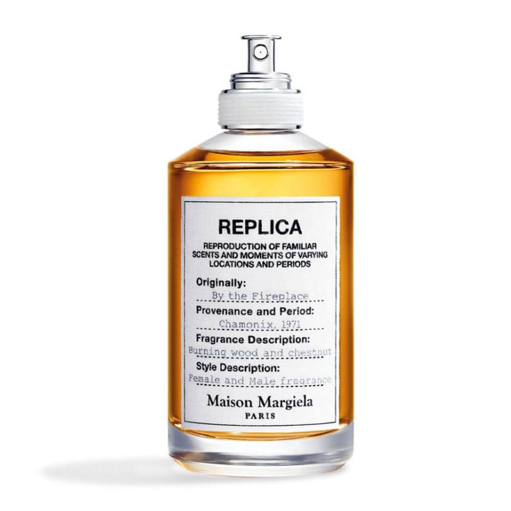 Maison Margiela’s By The Fireplace top notes are Cloves, Pink Pepper, and Orange Blossom; middle notes are Chestnut, Guaiac Wood, and Juniper; base notes are Vanilla, Peru Balsam, and Cashmeran.