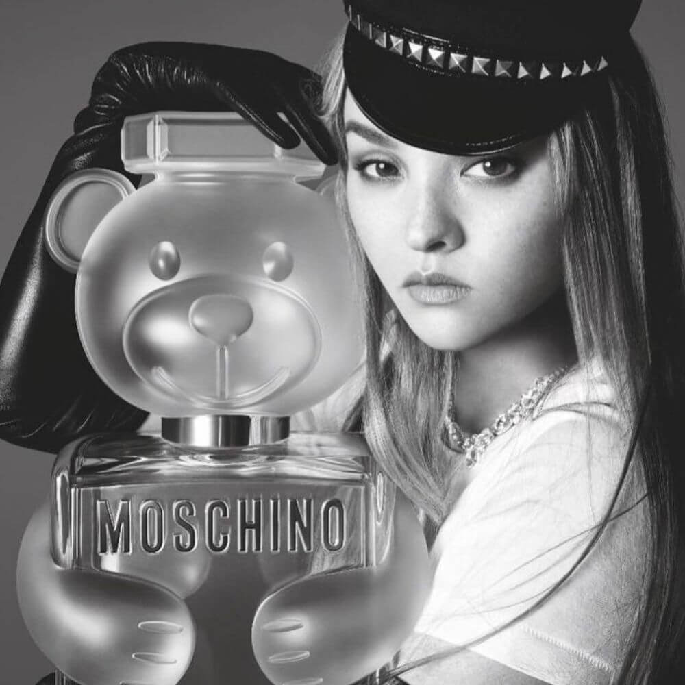 Moschino Toy 2 EDP For Women's top notes are Apple, Mandarin Orange, and Magnolia; middle notes are White Currant, Peony, and Jasmine; base notes are Musk, Sandalwood, and Amberwood.