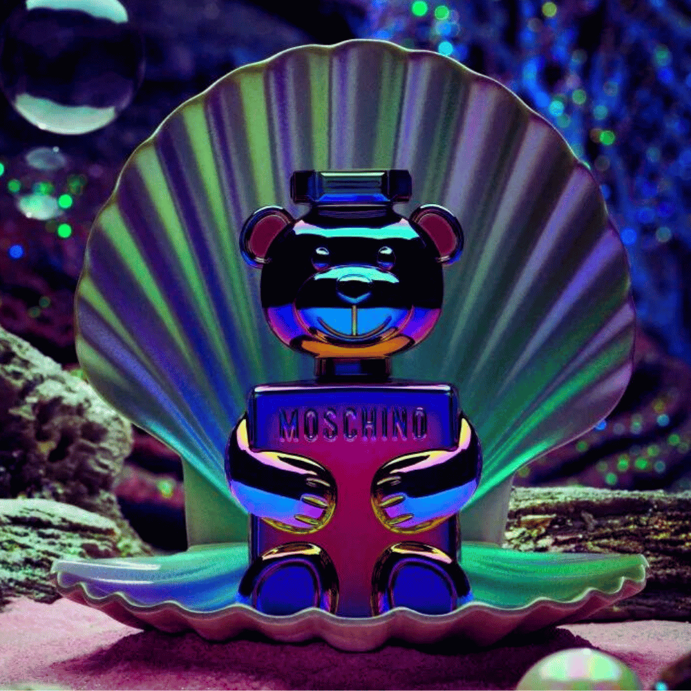 Introducing TOY 2 PEARL Eau de Parfum, a captivating fragrance housed in a 100 ml bottle shaped like the iconic Moschino Teddy Bear, evoking the beauty of the seabed and Tahitian mother-of-pearl.