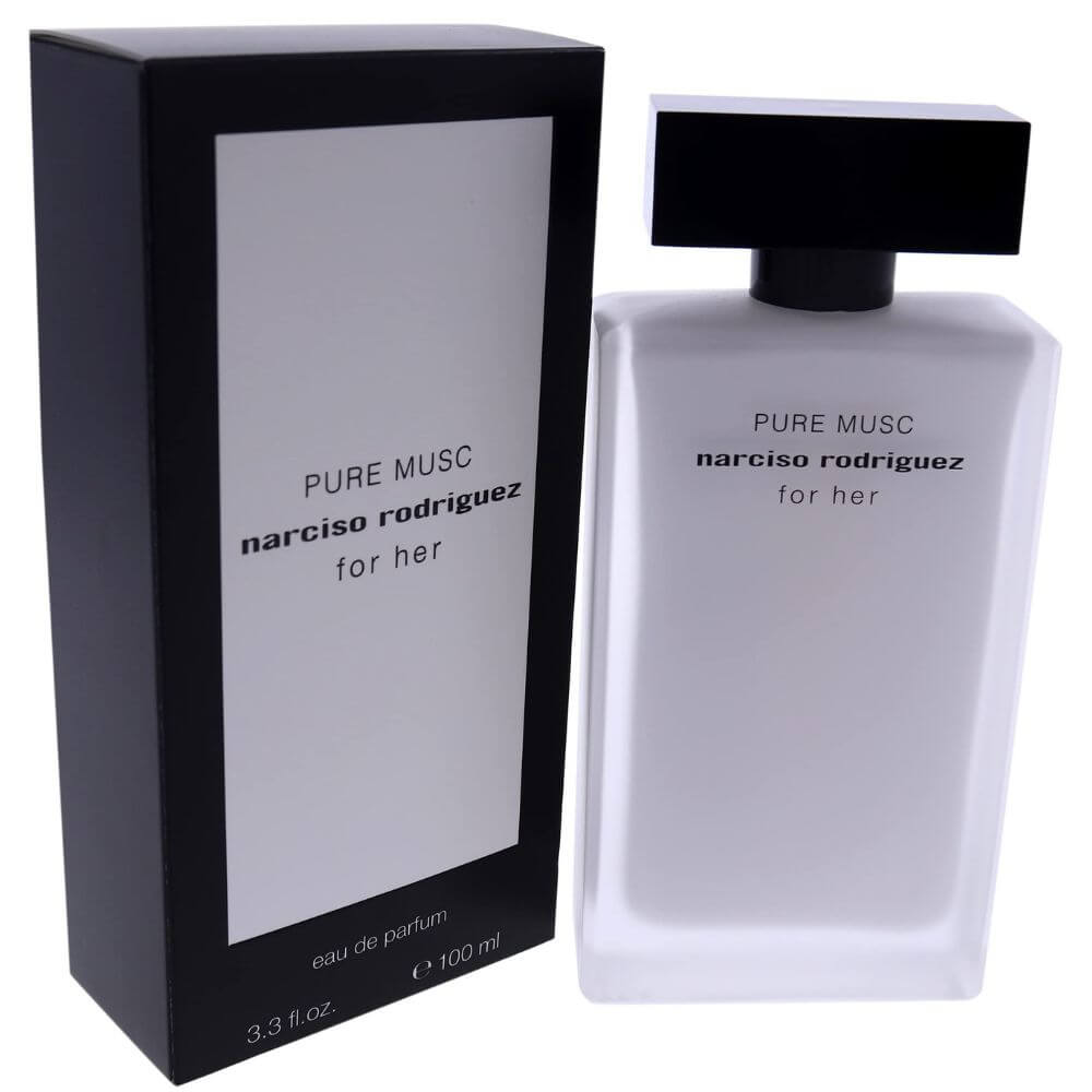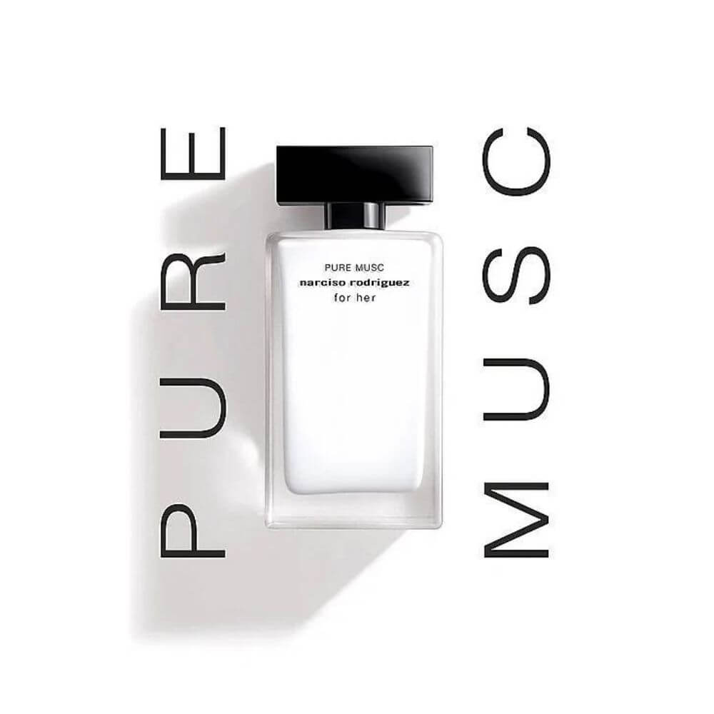 Narciso Rodriguez for her Pure Musc Eau de Parfum's top note is Musk; the middle note is Flowers; the base note is Cashmeran.