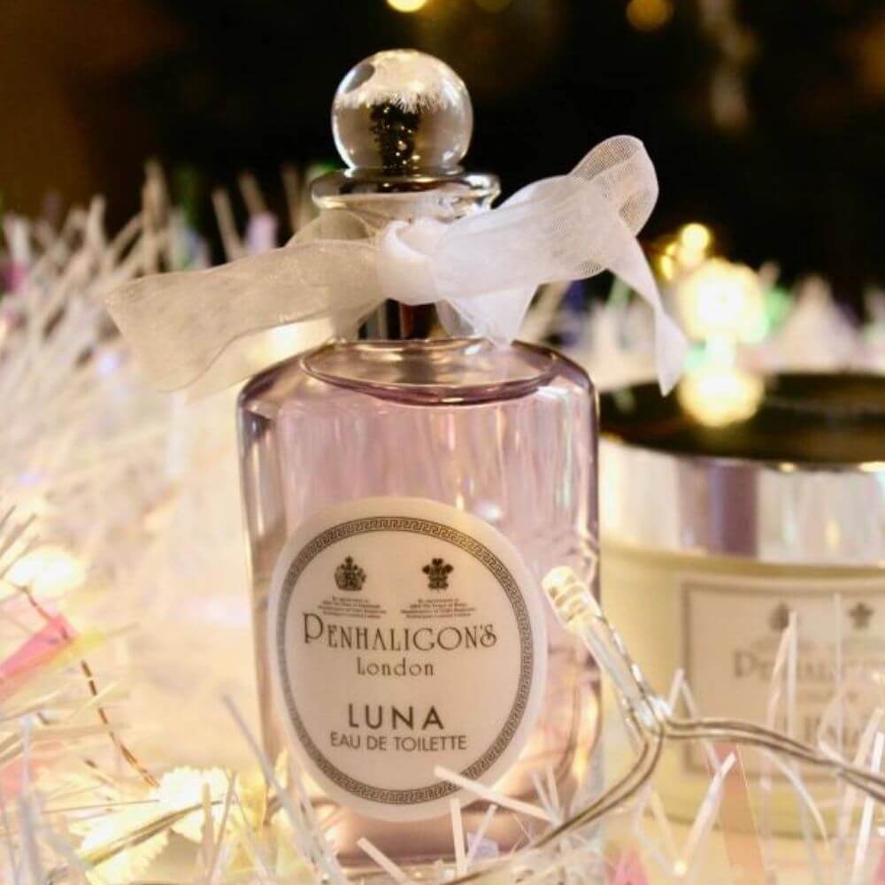 Penhaligon's Luna Eau de Toilette's top notes are Lemon, Bergamot, and Bitter Orange; the middle notes are Rose, Juniper Berries, and Jasmine; the base notes are Balsam Fir, Musk, and Ambergris.